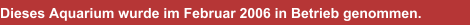Das Aquarium wurde Anfang 2006 in Betrieb genommen und nach ca. 6 Monaten Einfahrzeit mit o.g. Fischen besetzt.